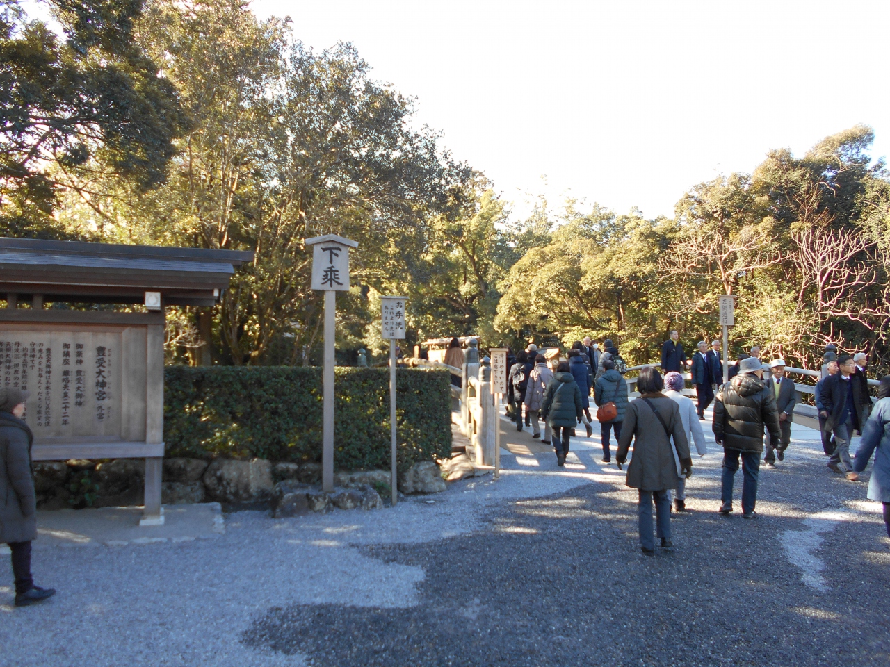 令和最初の伊勢参り。バスツアーで先ずは外宮(豊受大神宮)から。日本人の故郷と言われるお伊勢さんは豊受大神宮の外宮と皇大神宮の内宮の両大神宮を中心として14か所の別宮、43所の摂社、24所の末社、42所の所管社で成り立っています。天照大神の食事を司る神の豊受大神を祀る神宮が外宮で衣食住をはじめ産業の守り神です。厳かな神域にこれから入ります。