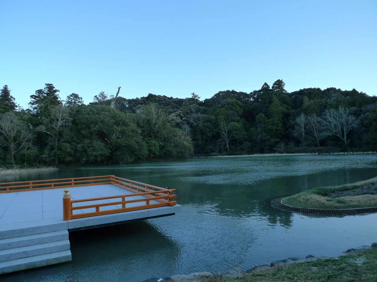 北御門から駐車場に出たので、再び火除橋を渡って勾玉池へ。