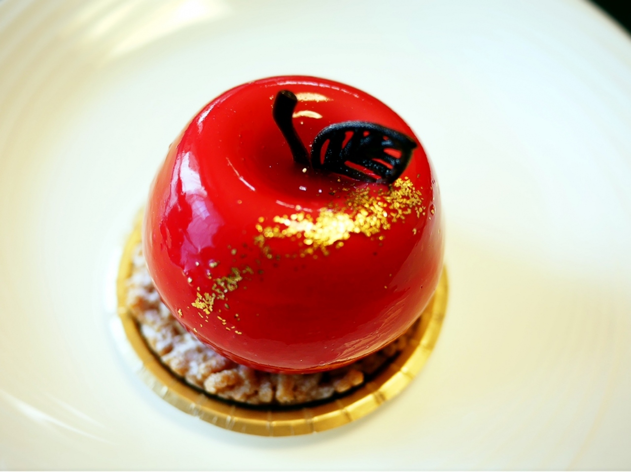 見た感じ、リンゴ飴のように外側は飴でコーティングされているのと思いきや、そうではありませんでした。ゼラチンの光沢感だったのですね。