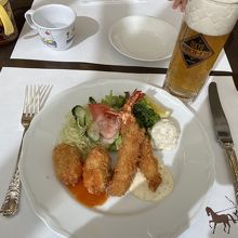 上野駅からすぐ近く、歴史ある精養軒に初めて行きました。夏目漱石の小説でも出てくるような精養軒ですが、こちらのお店はとてもカジュアルです。子供にもウェルカムで、特に窓際の席を案内してもらったおかげで子供は離乳食を食べながらずっと電車を見てはしゃいでいました。大人はエビフライとオムライスを注文。ハイカラな洋食を堪能しました。