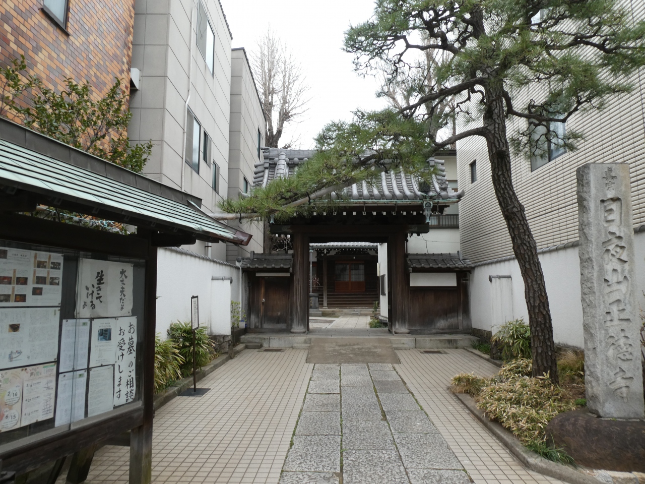 京浜急行線新馬場駅から徒歩でアクセスが可能で品川神社の参道筋に山門が有り境内に入れます。