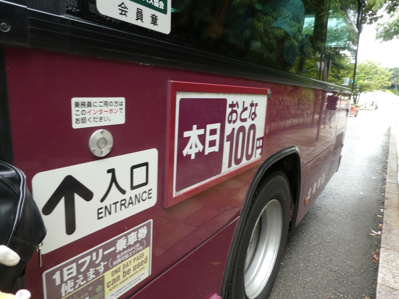 金沢は駅から街中まで歩くには遠く、バスだとちょっと近い微妙な距離。でも兼六園は歩くと40分くらい。なので兼六園まで快速運転のこの兼六園シャトルが便利です。しかも週末は100円で乗車できます。渋滞回避のためのバスへの誘導策なのでしょう。が、あまり知られていないのが残念。車内は混雑していますがちょっとの距離なので問題ないと思います。