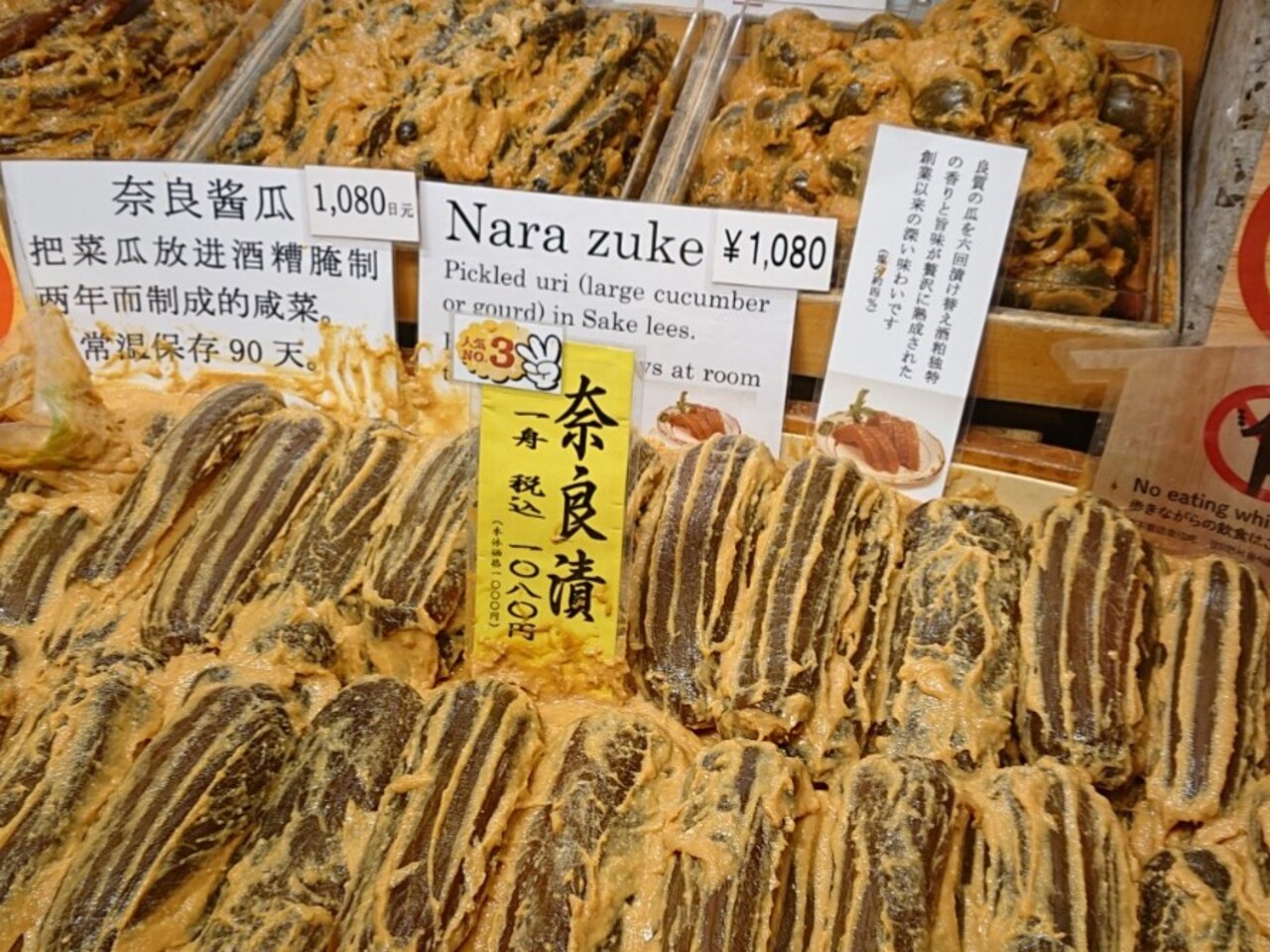 京都の野菜である、すぐき等、漬け物も様々並び、奈良漬けが大量に売られてます。