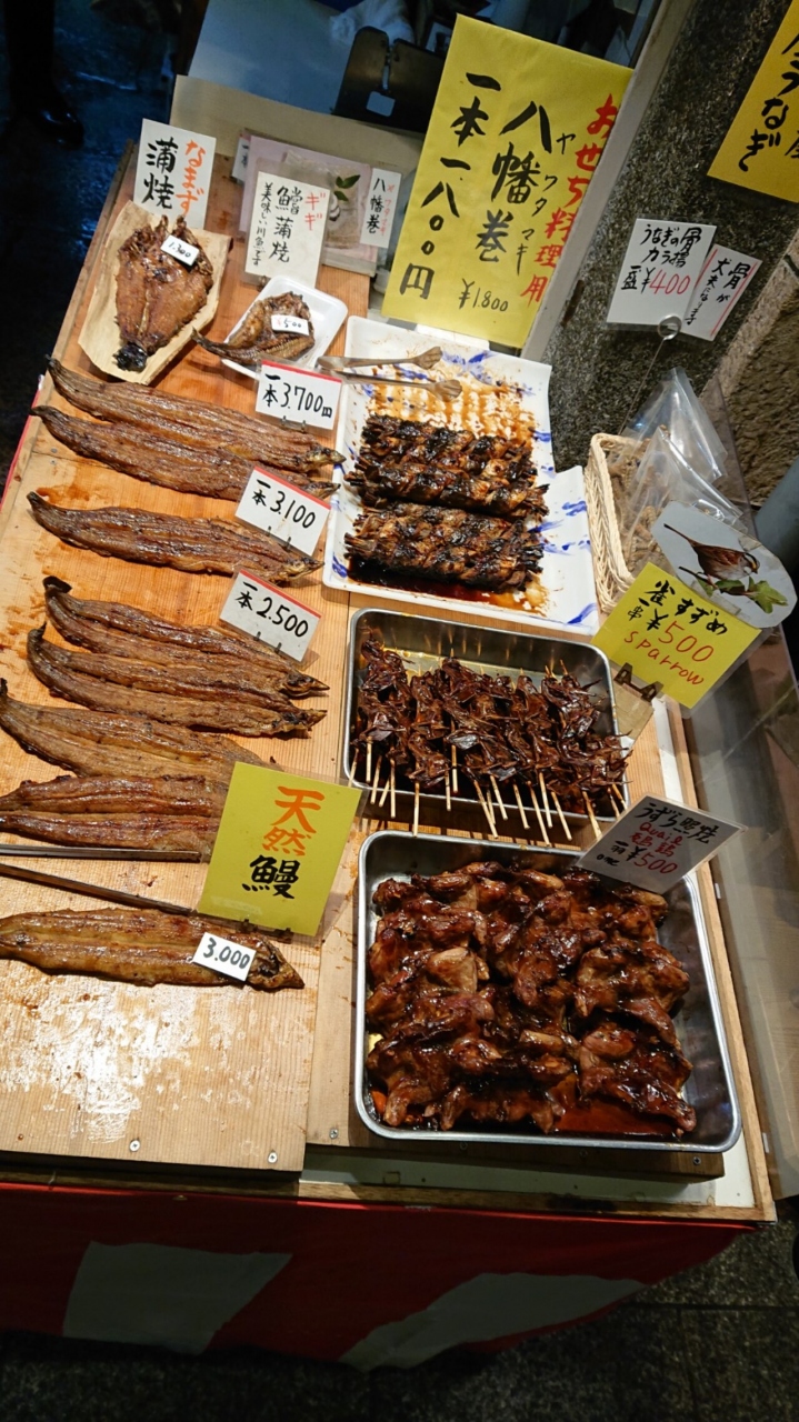すっぽんのお惣菜に、白味噌に、スズメの焼き鳥が珍しい。美味しそう。