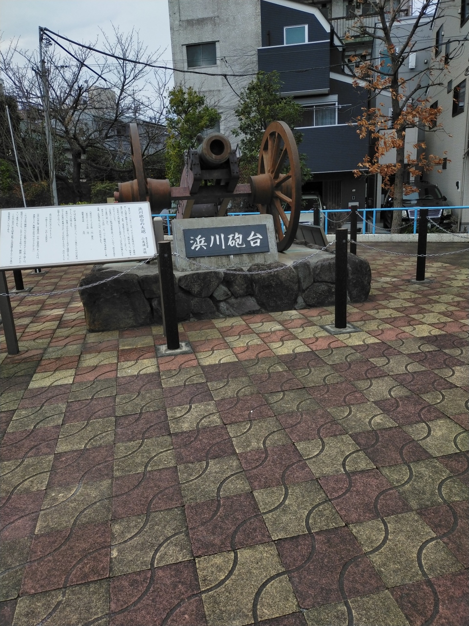 ペリー来航に対して、幕府が品川宿の立会川の浜辺に大砲8門を備える砲台を築いて異国船の再来襲に備えました。