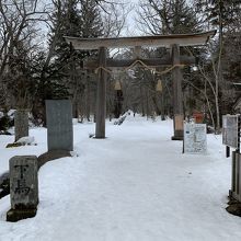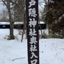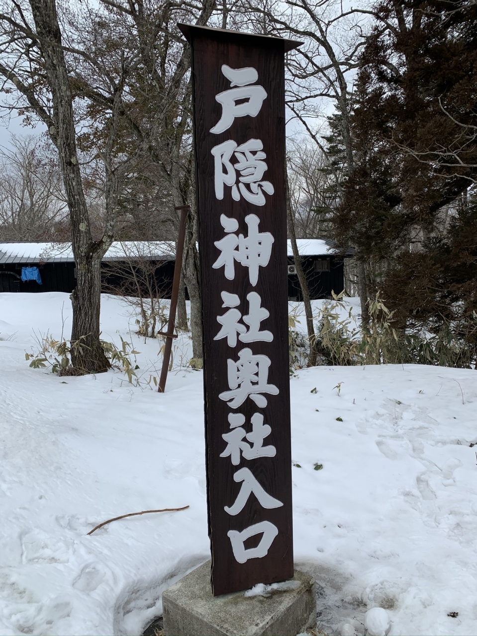 中社から徒歩で20分ほどの場所にありますが、冬場はバスがないので、歩いていきました。奥社の入り口前には少ないですが駐車場があり、車で来ている人が多かったです。途中まで歩きましたが、雪が多く、スニーカーであったので断念。中社に戻り、御朱印をいただきました。
