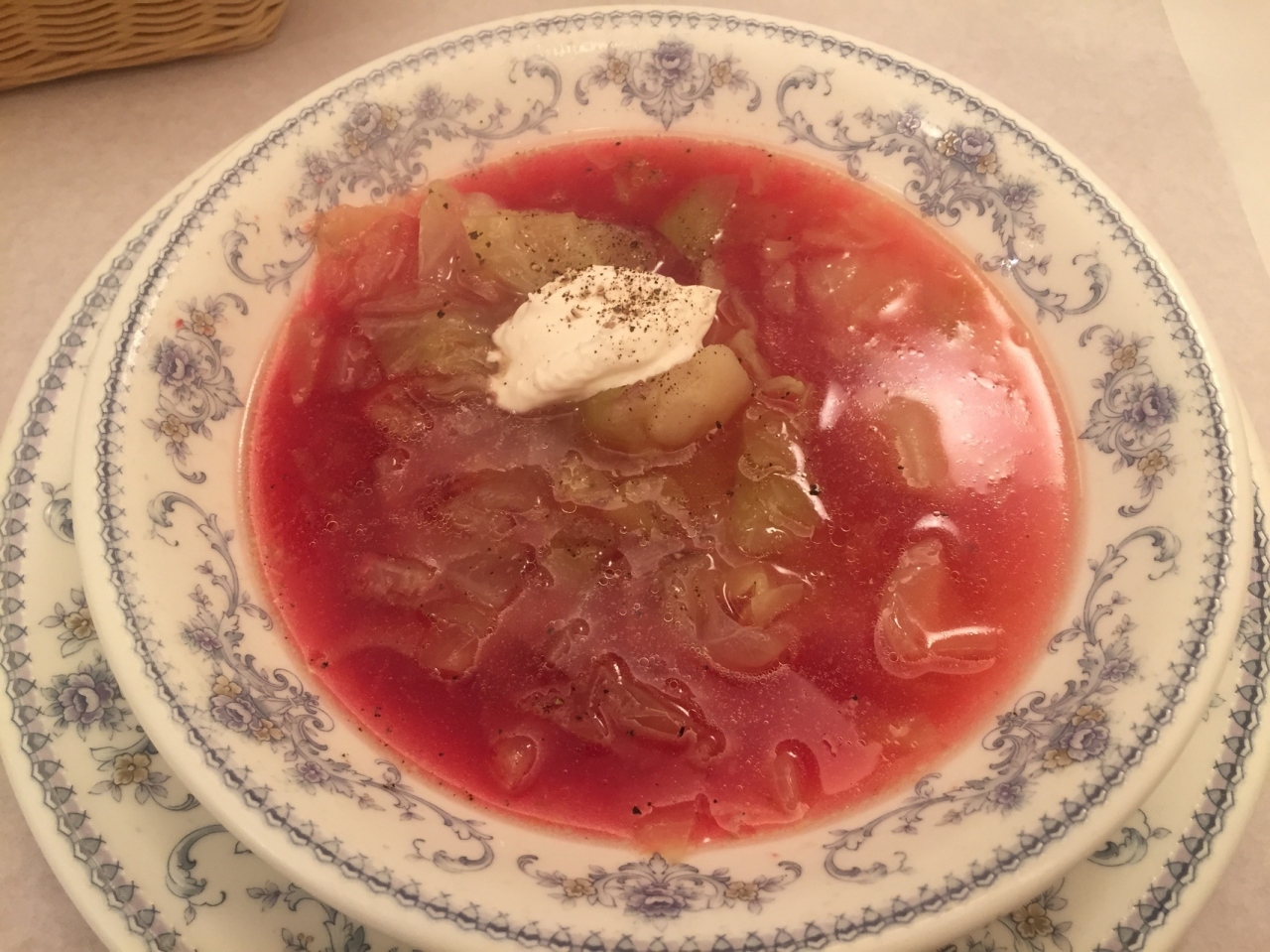 いつものボルシチ。パンはボルシチに浸してお召し上がりください。