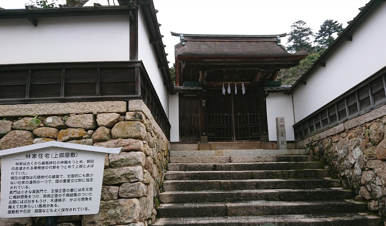 厳島神社さんから大聖院方面へ歩いて行く途中にある立派なお屋敷です、こちらの屋敷は神官のお屋敷だそうで石垣と塀で囲まれた小さな要塞のような雰囲気もある場所です、この辺りは歴史を感じさせる建物がいくつかあり興味深い場所です、事前予約をすれば内部の見学も出来るようです。