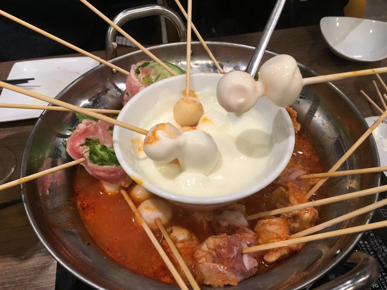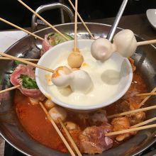 美味しいんだけど、具材が浸かるほどスープが入っておらず、なかなか火が通らないのでチーズフォンデュするまで時間がかかる。
