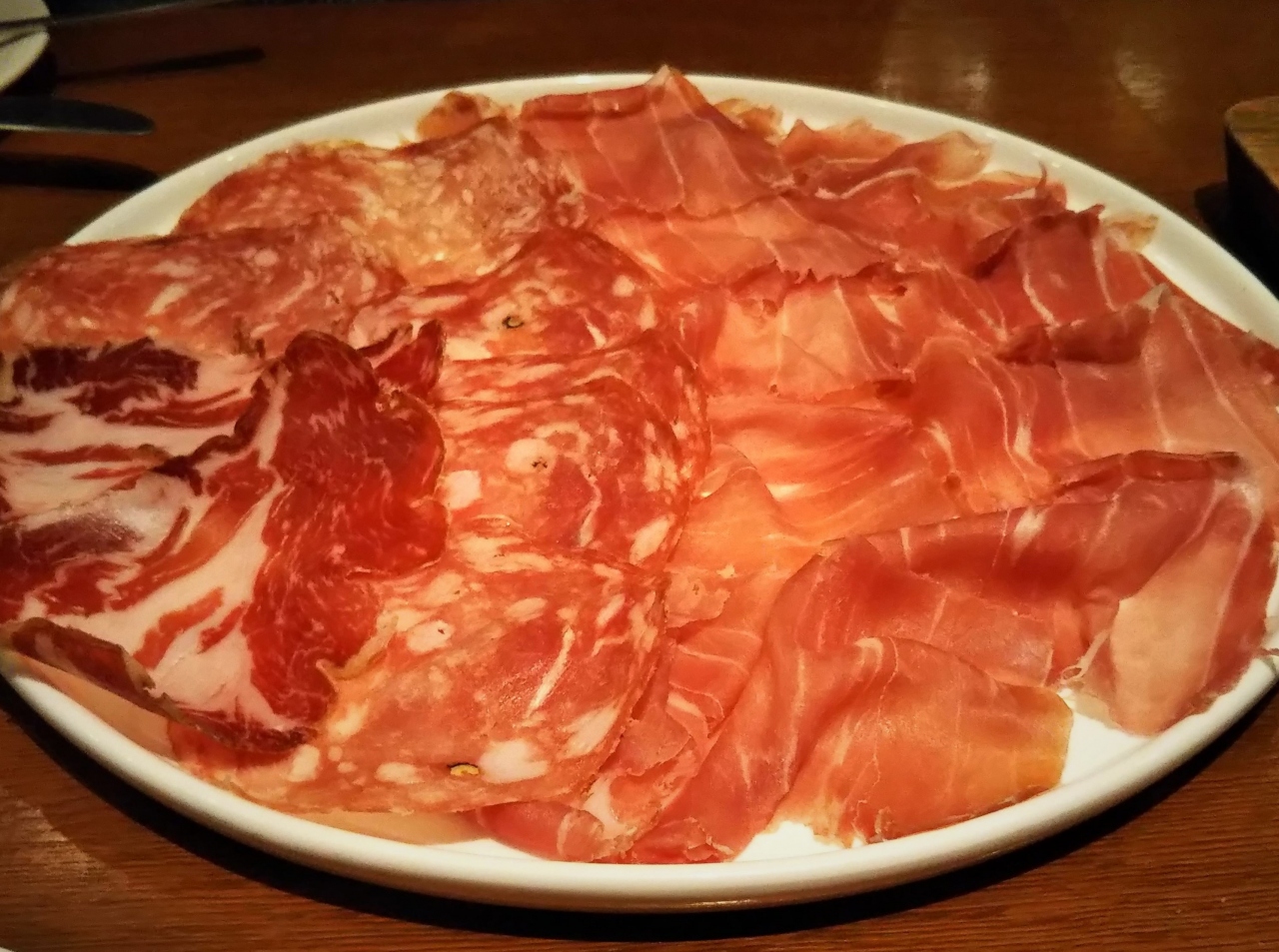 前菜盛り合わせや生ハムサラミの盛り合わせは、見た目にも楽しく気分も上がる。