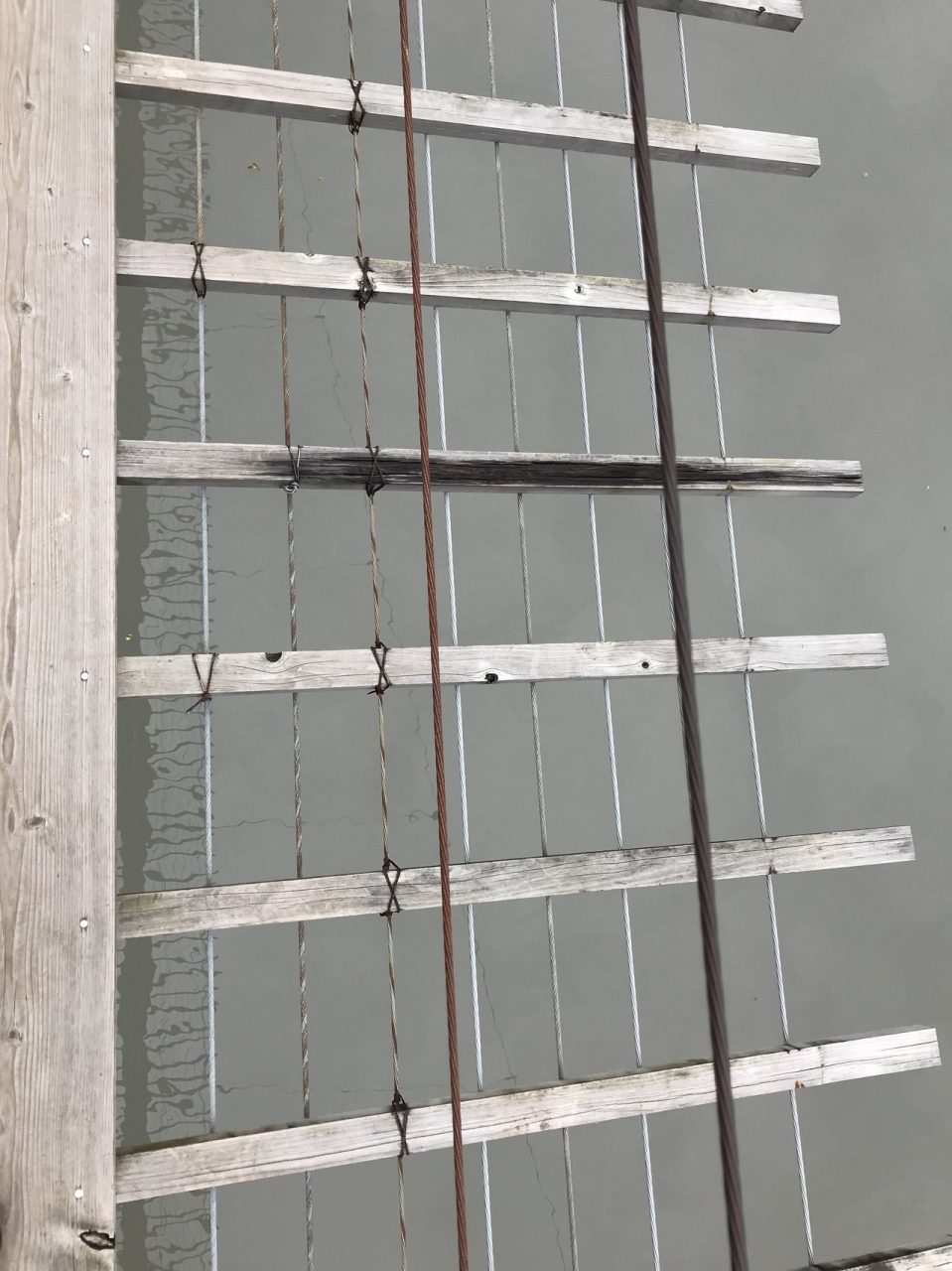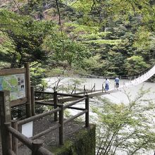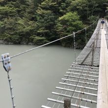 吊橋の中央部はかなり揺れ、足元は川面が見える。高所恐怖症の方は他の人の迷惑になるので近寄らない方が良い。渡らないで下さい。