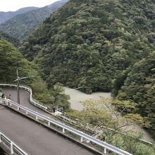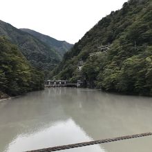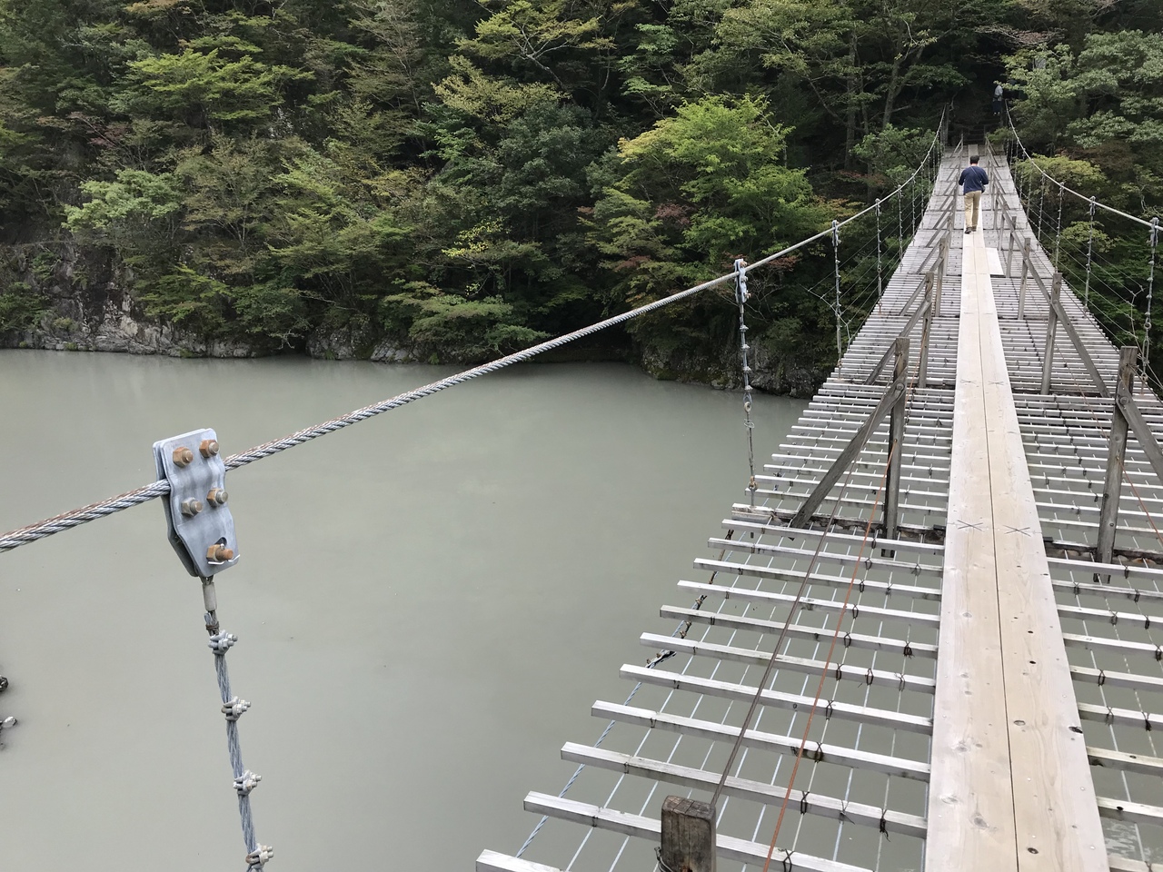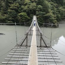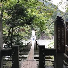 大間ダム湖に架かる長さ90m・水面からの高さ8mの吊橋。