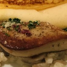 ランチセットがおトクでしたが、オムレツの付け合わせ?ソース?がラタトゥイユであまり好きではなかったので、単品のオムレツでキノコと押し麦のクリームリゾット フォアグラのポアレを選びました。
