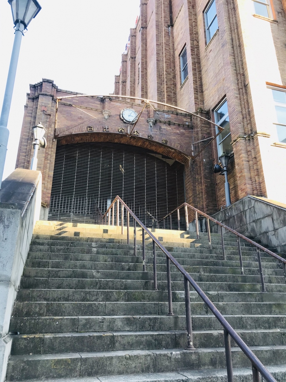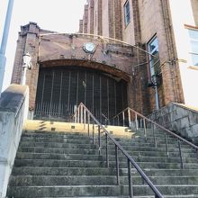 正面右手に廻ってみると趣のある階段があり、この公会堂が現役だった頃は着飾った人たちがこの階段を使っていたのだろうな・・・と想像が膨らみました。