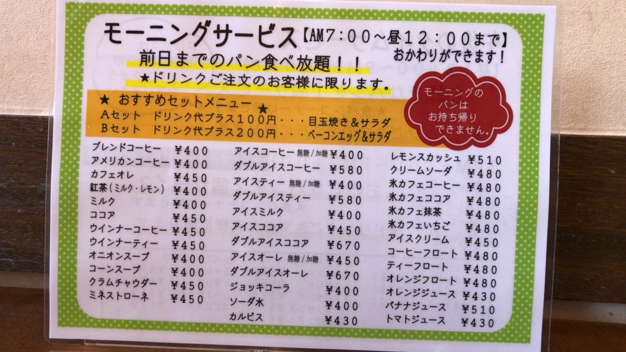 パン食べ放題のモーニングを「シャンテーコジマ」~名古屋市天白区~