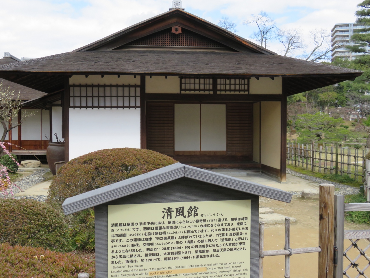 縮景園は旧藩主の庭園であり、散策にはとてもいいです。