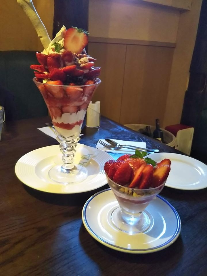 地元のパスタとピザのお店です。大船に住んでいる甥っ子たちがこちらのパスタが大好きで沼津に来た際には必ず寄ります。パスタのメニューも豊富で選ぶのも楽しい。先日行った際にはいちごフェアをやっており、Instagramにアップするとデザートが半額になるとのこと。大きなパフェを注文しました。