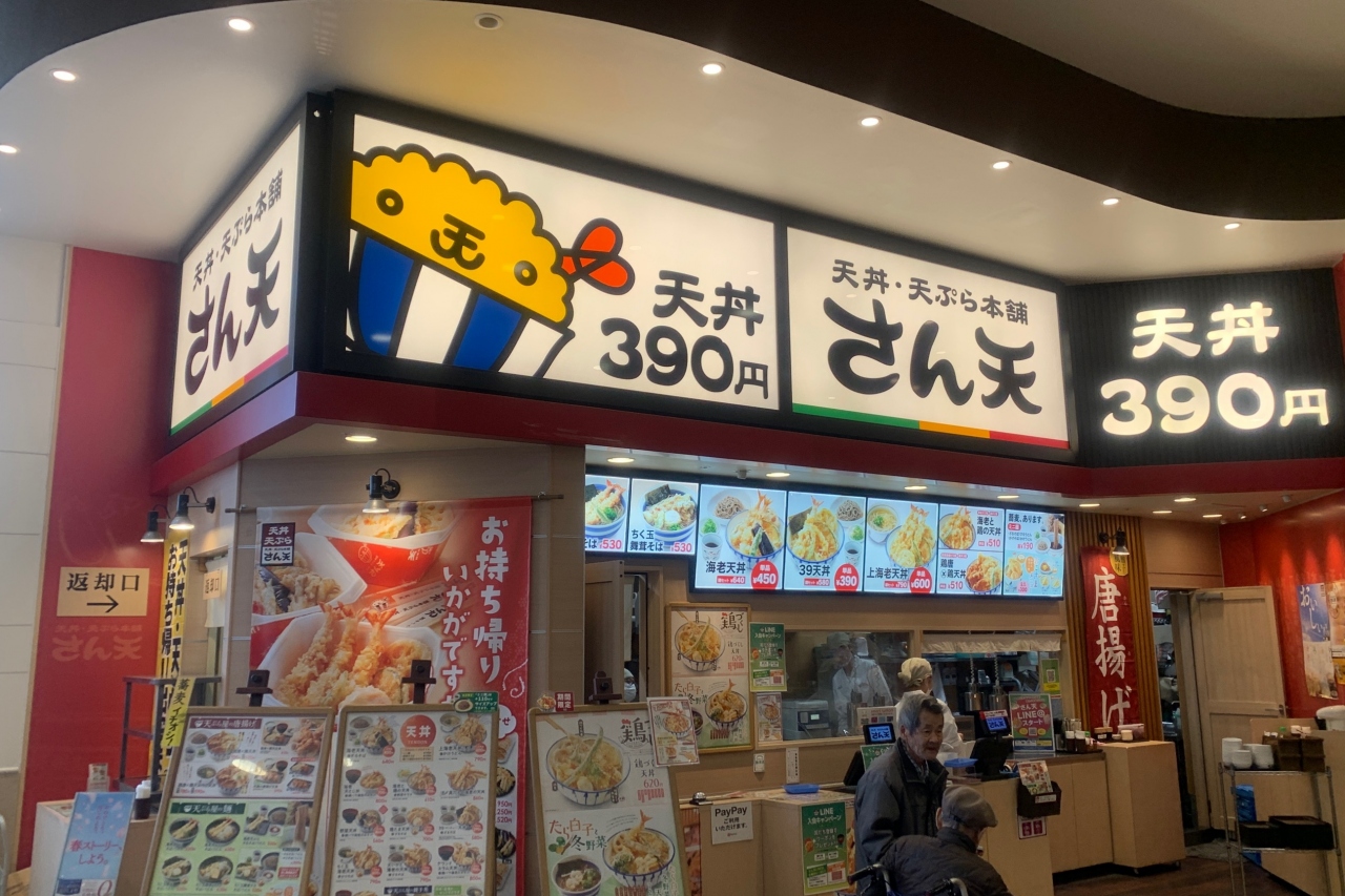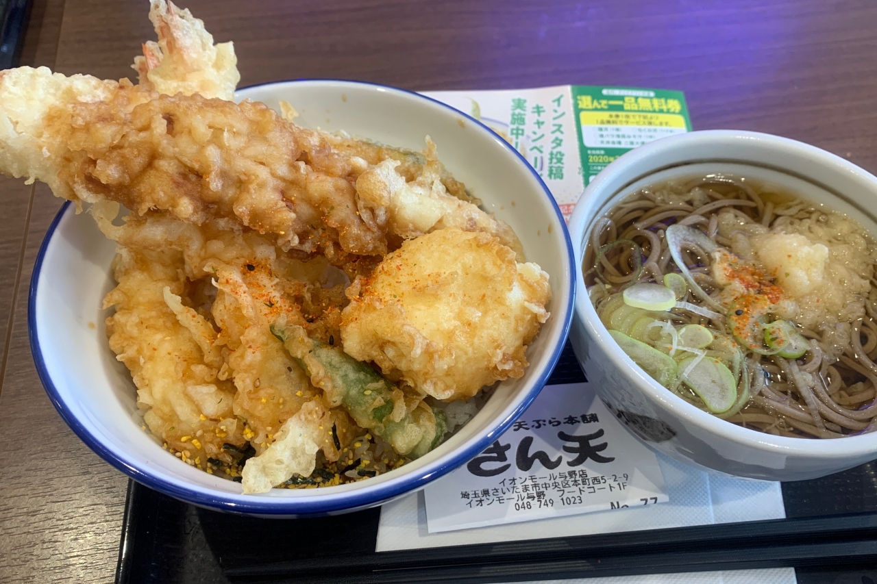 さん天イオンモール与野店は、国道17号線近くのイオンモール与野のフードコートにある天ぷらチェーン店です。