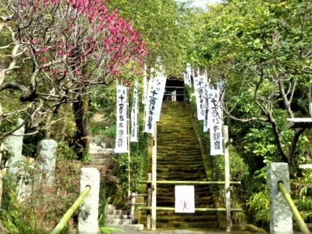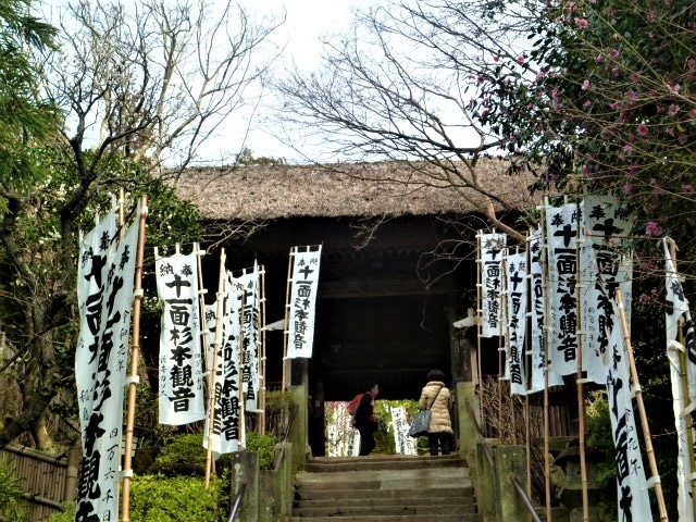 2月中旬に杉本寺に参拝しました。実は 三浦一族で調べると、山一帯は`杉本城跡`で杉本義宗(三浦義明;源頼朝の功徳が厚い;の長男)が築いたものです…古来から在った`杉本寺`(天平6年/734年 坂東・鎌倉三十三箇所の第1番札所)があったので家名/お城も名乗ったのですね♪ お堂にあがらせて!(普通は本堂の外から参拝するのですが)、ご本尊や仏様をまじかに拝礼することが(-_-♪) `茅葺`の本堂と仁王門、参道には、両側に真白な十一面杉本観音の奉納旗がはためいて、紅白梅/椿と苔が♪ `苔の石段`も見事でした(^^)