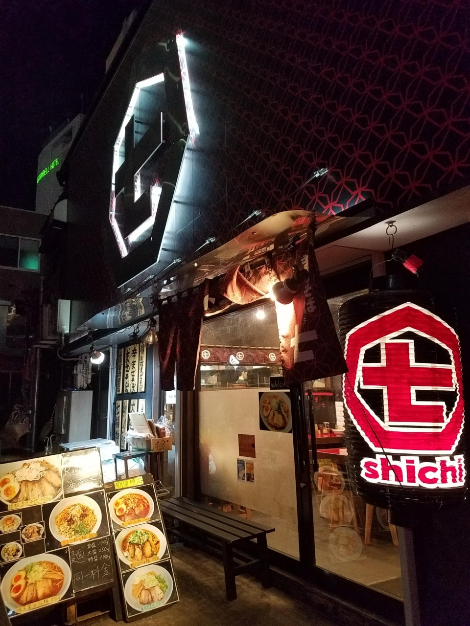 まぜそば七(しち)は、渋谷駅近く桜丘のメイン通りから入った路地にあります。立地は少し分かりずらいですが、赤い看板が目立ち、お客さんもひっきりなしでした。定番のまぜそばは、厚切りチャーシューたっぷりで太麺と合って美味しかったです。