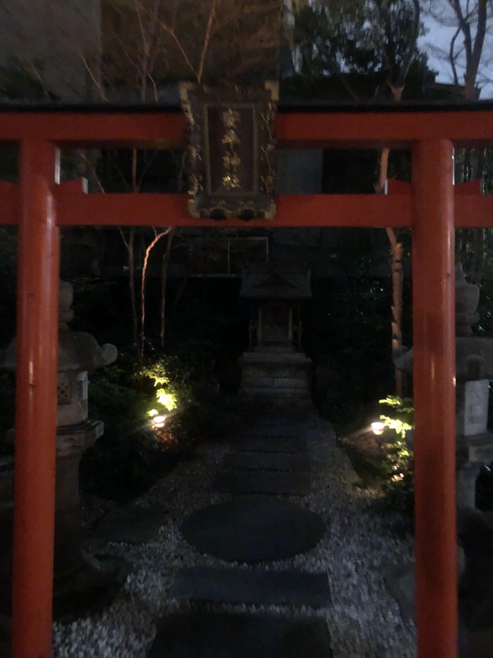 知り合いの事務所に夜に訪れた際に近くにあった神社です。駅は一番最寄りが新富町です。住所が銀座一丁目にあります。夜には小さくあまり目立たないので通り過ぎてしまうごどです。隣は高層マンションです。江戸時代に、新庄美濃守(しんじょうみののかみ)の屋敷があり、屋敷神として祀られた神社だそうです。