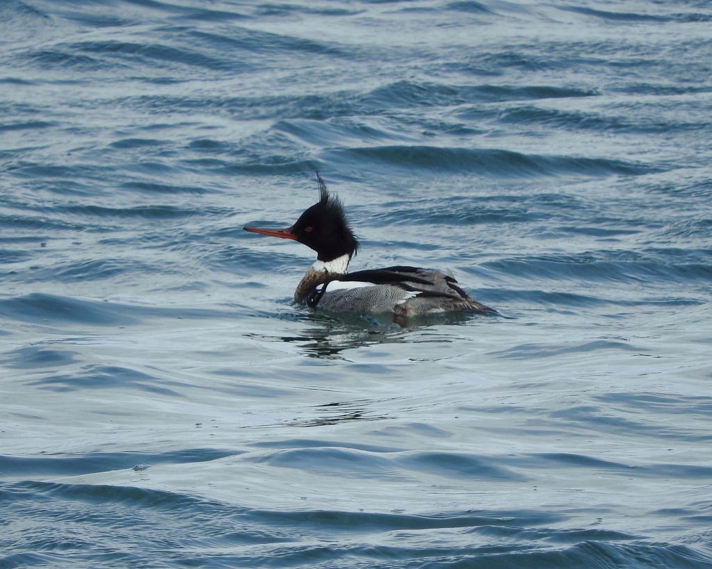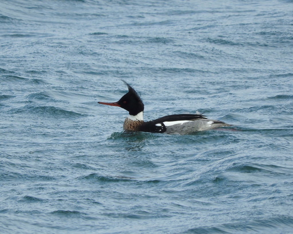 波崎新港でバードウォッチングを楽しんだ時、利根川河口部の水路でウミアイサ♂が見られました。