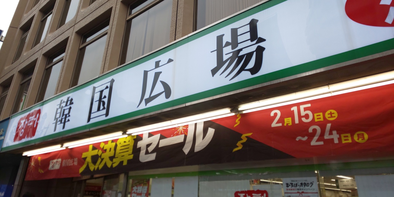 ハローワークなどがある新大久保と新宿の間の通り沿いにある韓国食材のスーパーマーケットです。