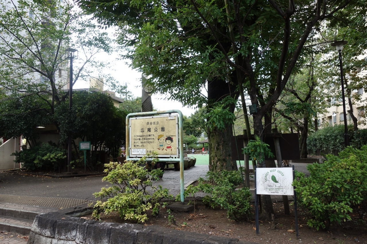 麻布や広尾あたりのエリアを散策中こちらの場所へ立ち寄りました。明治通りと外苑西通りの天現寺交差点に近い立地の公園です。周りはビルなどの建物に囲まれていますが、園内には植栽や遊具が見られて地元の方たちの憩いの場であることがわかりました。