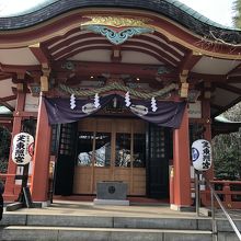 現在の社殿はそれほど大きくはありませんが、朱色が鮮やかでした。参拝客は増上寺に比べると少なめでした。