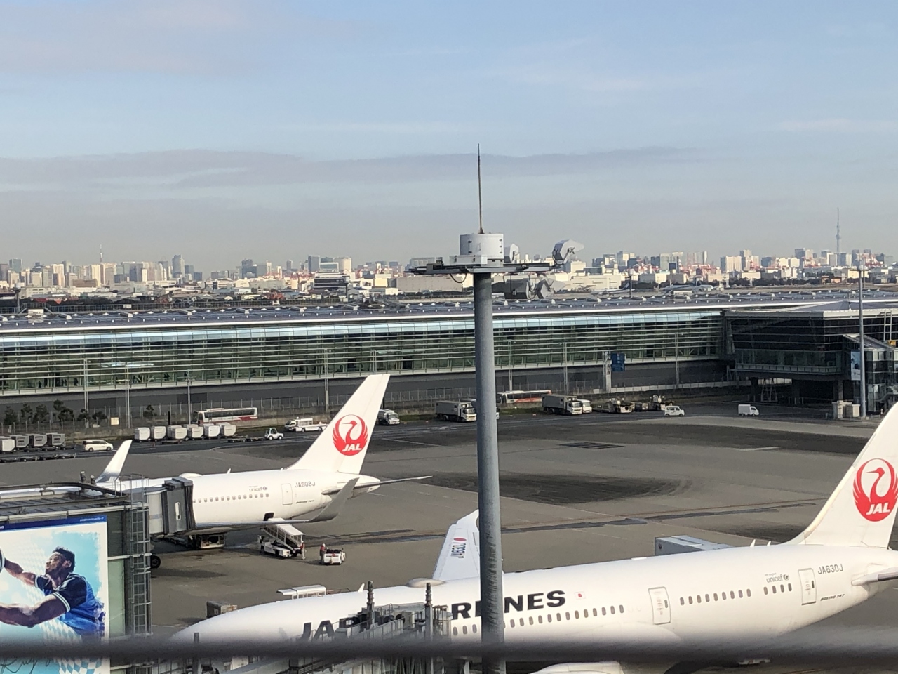 搭乗するまでに時間があったので屋上へ。晴れて青空。飛行機の離発着が見られます。もちろん遠くにスカイツリーや東京タワーも見えました。ベンチがあるので、ゆっくり、ぼーっとするのも良し、望遠鏡で大きく見るのも良し。楽しめます。
