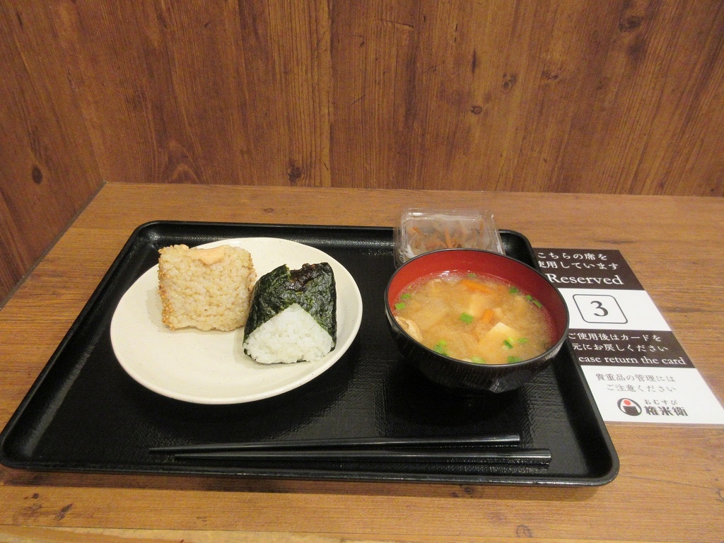おにぎり2個と味噌汁、さらに小鉢のついたセットを美味しく頂くことが出来ました。