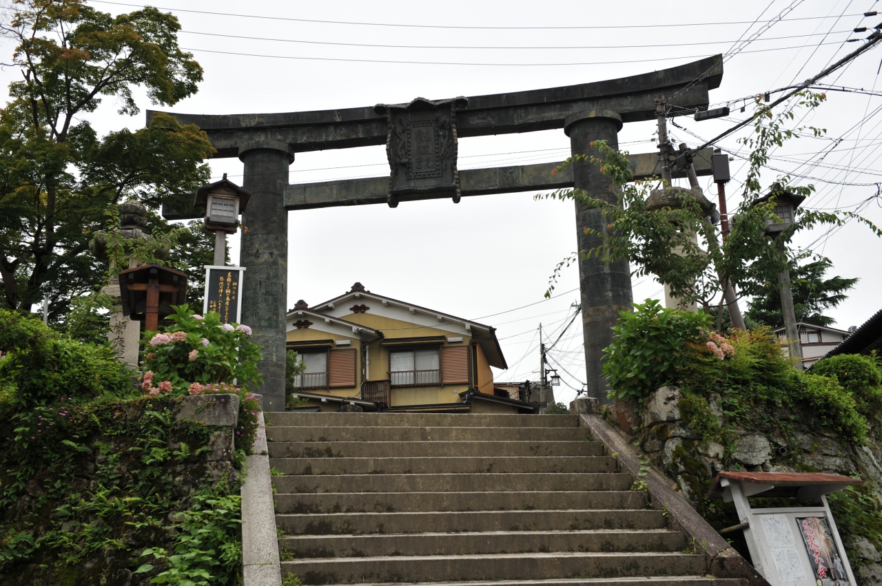 現地の「概要」によると高さ8・2メートル。創立年代は不明だが、聖武天皇が奈良の大仏を建立した際に余った銅で造ったという伝説がある。現在の鳥居は後年に建て替えられたものだ。正式名称は発心門。この鳥居は俗界と浄域の結界であり、仏道修行を発心する場所との意だ。独特の文字で描かれた「発心門」という扁額がある。吉野山から山上ケ岳までの間には発心門を含め、修行、等覚、妙覚の四門があり、この鳥居が最初の門だ。黒門からの坂を登りつめたところにあり、この辺りから門前町の雰囲気が濃くなる。