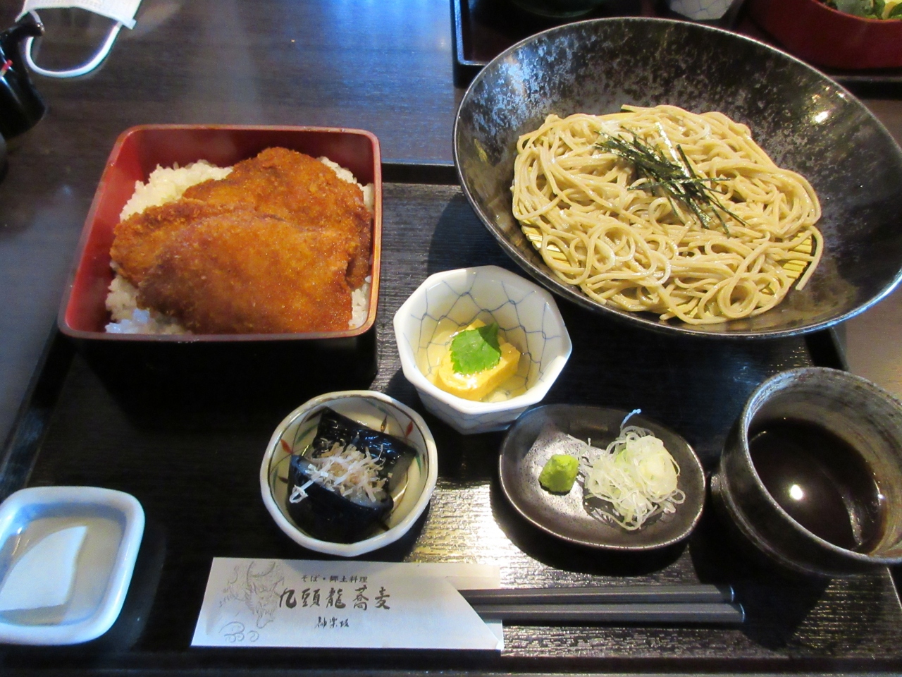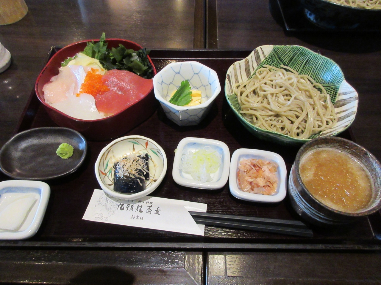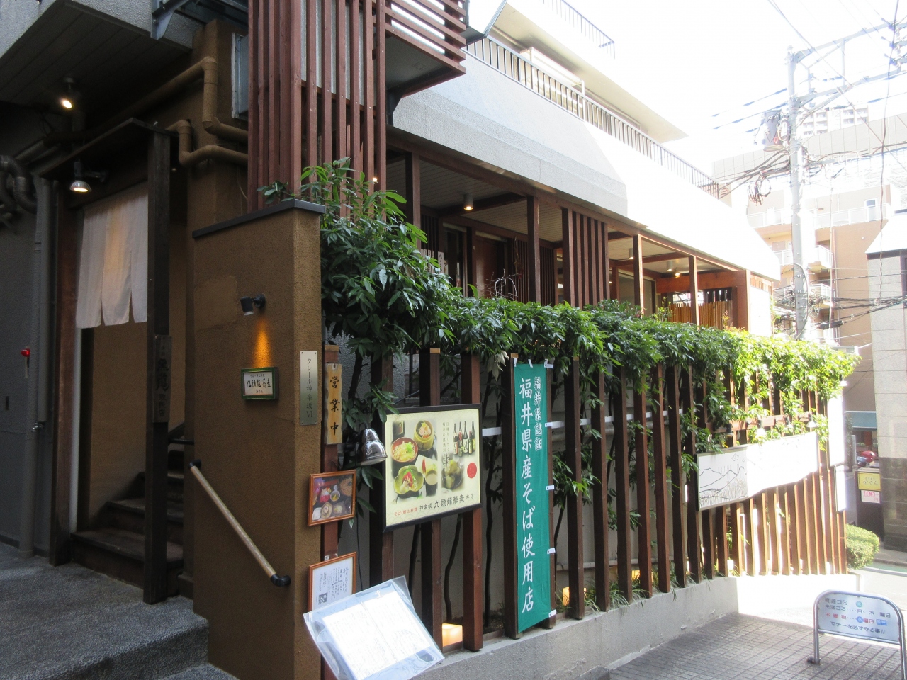 神楽坂仲通り沿いに建つ、福井の郷土料理と蕎麦を味わえる店です。土日、祝日限定の選べるランチセットをいただきました。蕎麦と海鮮丼やソースカツ重、海老天重がセットになったもので、出汁巻玉子と小鉢が付いてきます。蕎麦はコシがあり冷たい水でよくしめてあり、おろしも汁にたっぷり入っていて、久しぶりに美味しいそばを東京で食べた感じがしました。カツの肉は薄めでしたが、質が良い油が使われていて、甘辛いたれがしみていました。海鮮も脂がのっていて満足いくものでした。蕎麦湯もドロッとしていて、そばのエキスがたくさん入っているようでした。今回は食べませんでしたが、昼のおすすめとして、へしこやウニなどの珍味、焼き鯖寿司、天ぷら、おろしそばとビールや日本酒がセットになった昼飲みセットもそそられました。福井産の日本酒も数十種類用意されていて、蕎麦や日本酒が好きな方にはおすすめの店です。