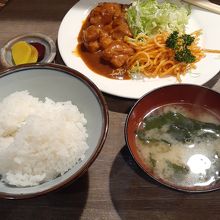 ちなみに当日のメニューはご飯・味噌汁の他、チキンソテーをメインにスパゲッティー添え、キャベツの千切りが付いていて、600~700円してもよい位の内容だと思います。