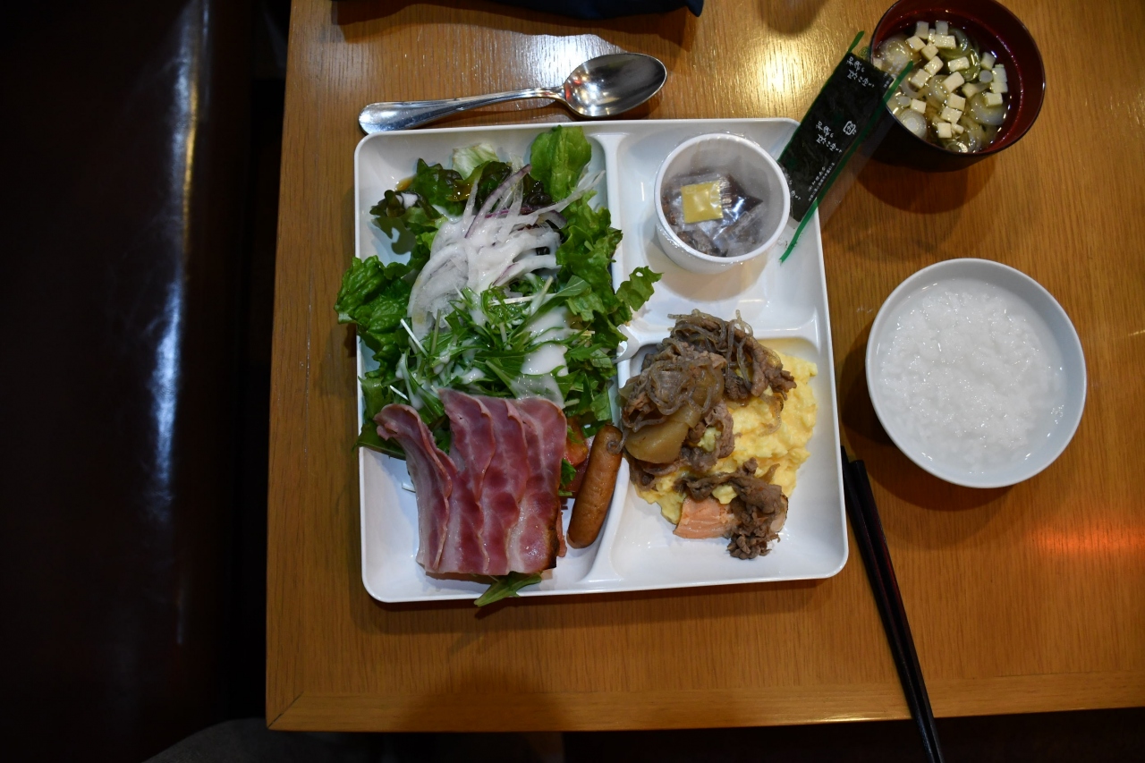 福島駅西口が目の前、イトーヨーカ堂がお隣という絶好の立地です。しかしながら日当たりは悪く、目立たない場所です。宿の朝食で利用しました。副菜の数はほどほどで、全品を少しづつ取ったとしても大した分量にはなりません。味は満足でした。