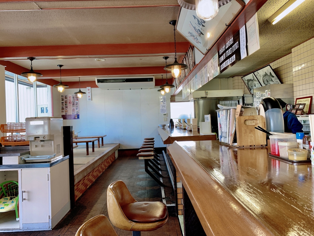 外観は店舗前に駐車場がありますがランチタイムは混み合って入れないケースも多々あり!店内はカウンター席と座敷テーブル席とあり外観ともに年季の入った雰囲気を醸し出しています。