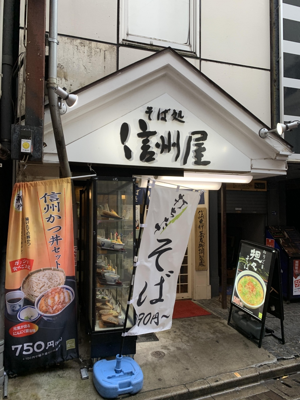 ここはわずかなカウンター席と立ち食いが基本の信州そばの店。
