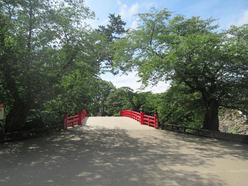 弘前城の内濠にかかり二の丸と本丸を結ぶ橋です。赤い欄干は杉の大橋と同様です。
