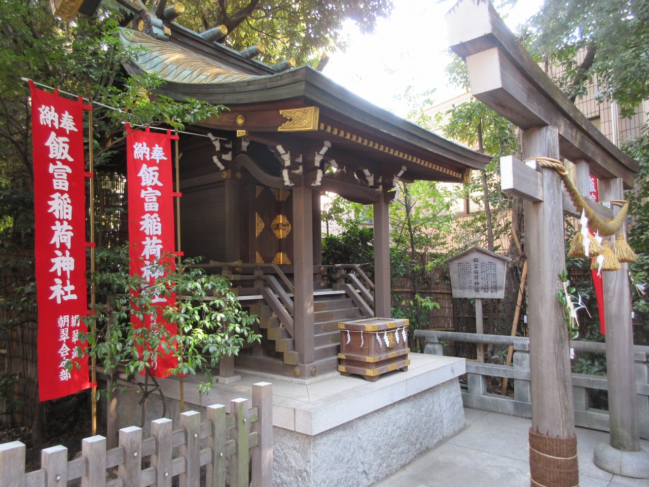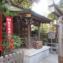 東京大神宮の神門横にあります。木造鳥居と赤い幟が十余り建っている小さくても立派な木造社殿です。東京大神宮が日比谷にあったころから境内にありました。九代目市川団十郎が篤く信仰していたことから芸能にゆかりのある稲荷神社として今も信仰されています。神門の内側に歌舞伎座の俳優たちが奉納した今年の絵馬が展示されていました。達筆や手書きの絵など個性的な絵馬を見ることができて嬉しかったです。訪れた時女性たちが次々とお参りしていました。東京大神宮にお参りする際に寄ることをおすすめします。