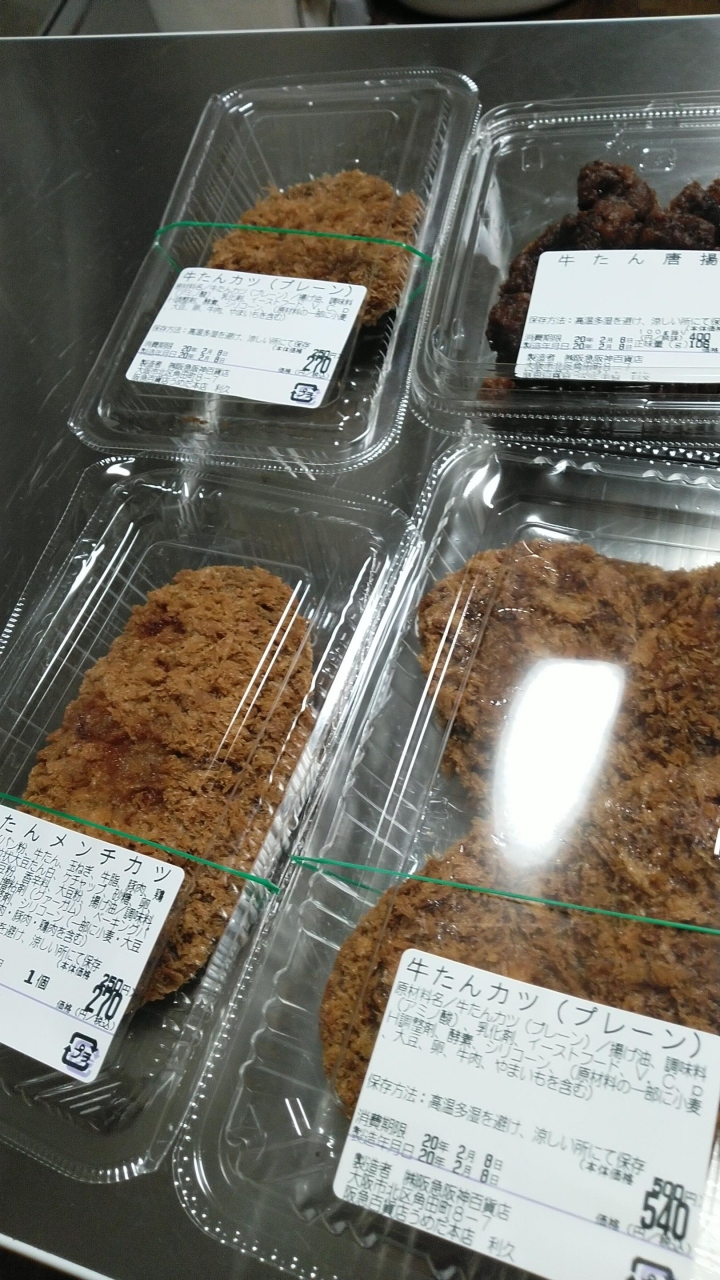 牛タンカツ、牛タンメンチカツ、牛タンから揚げです。
