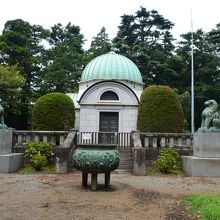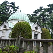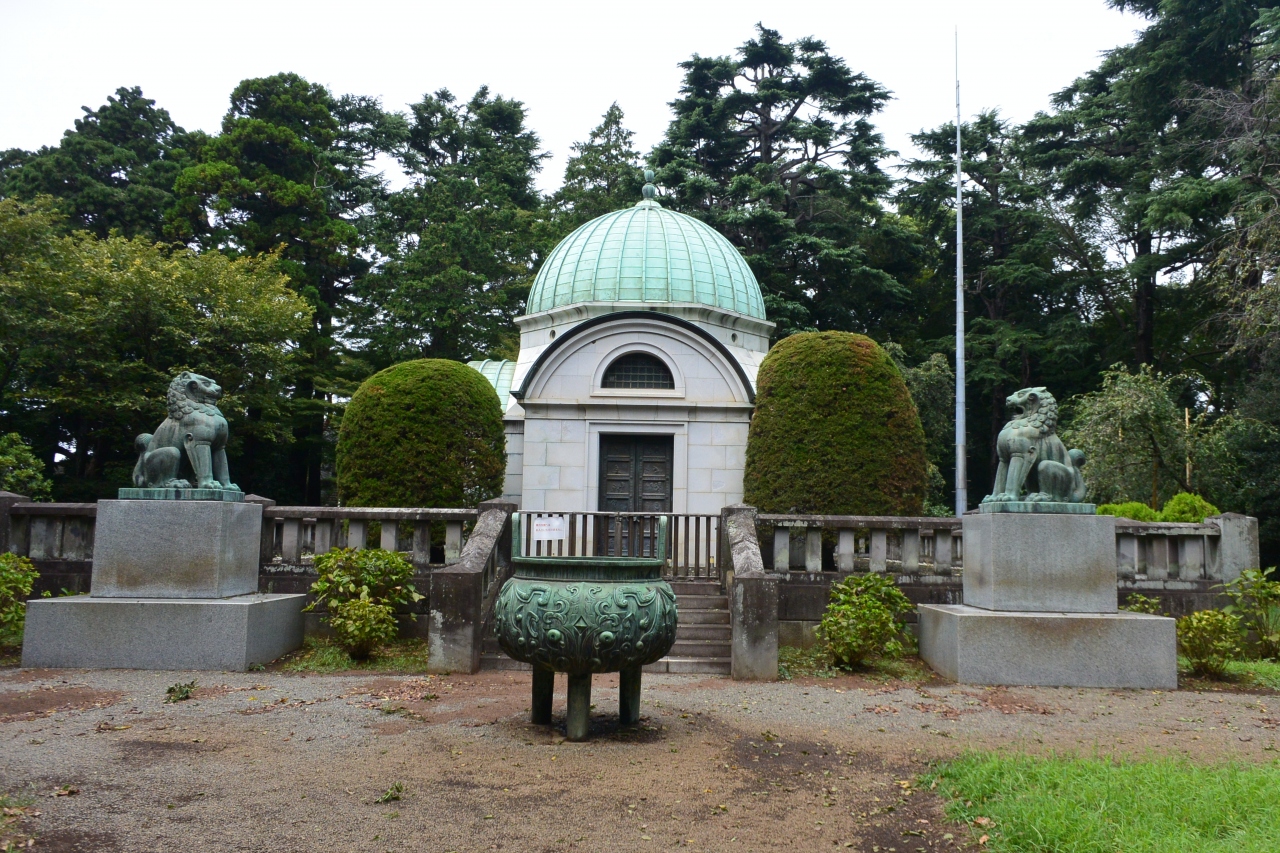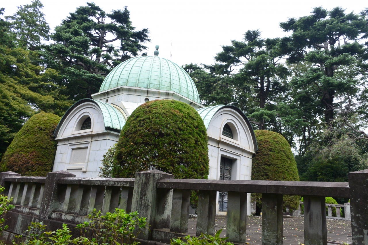 三菱岩崎家の霊廟ですが、設計はあのジョサイア・コンドルです。霊廟の外観はキリスト教の聖堂のようにも見えますが、扉には中国かどこかの故事か何かを表したレリーフが。大きな香炉も置かれていてちょっと不思議な感じがしました。静嘉堂文庫美術館の敷地内にあります。