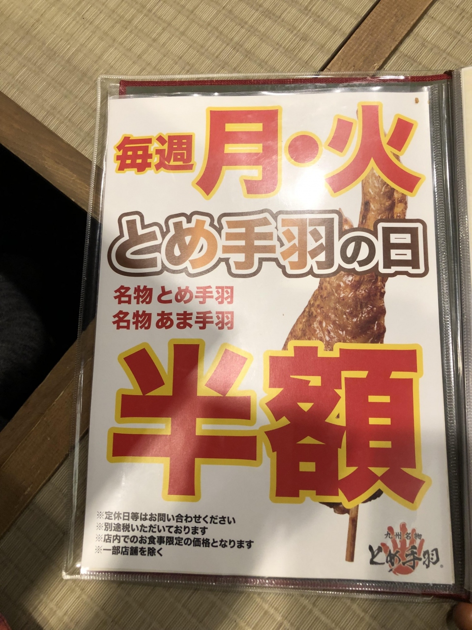 とめ手羽はパリパリ熱々でとても美味しかったです。