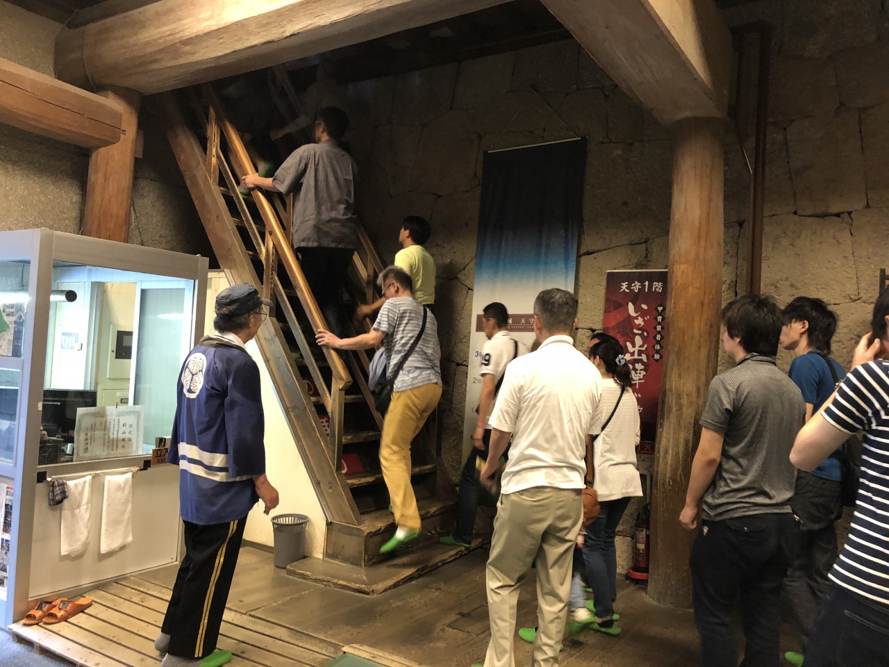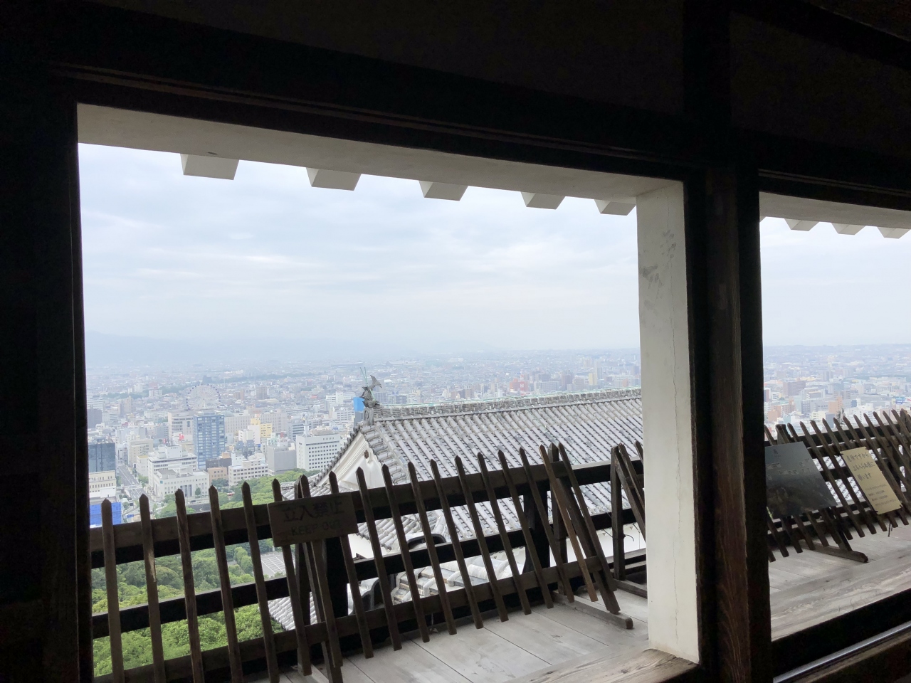 築城は関ヶ原合戦後の1602年、完成まで25年かかっている。「現存」といっても現在の天守は1854年に再建されたもので、天守は3重3階建て、小天守、隅櫓と連結された独特の形状で、内部は急な階段や、黒ずんだ柱や梁など本物の城の迫力を持つ。大天守からは城下町を一望でき、その眺望は素晴らしい。また石垣の高さは16mもあるなど、見ごたえに満ちた名城だ。