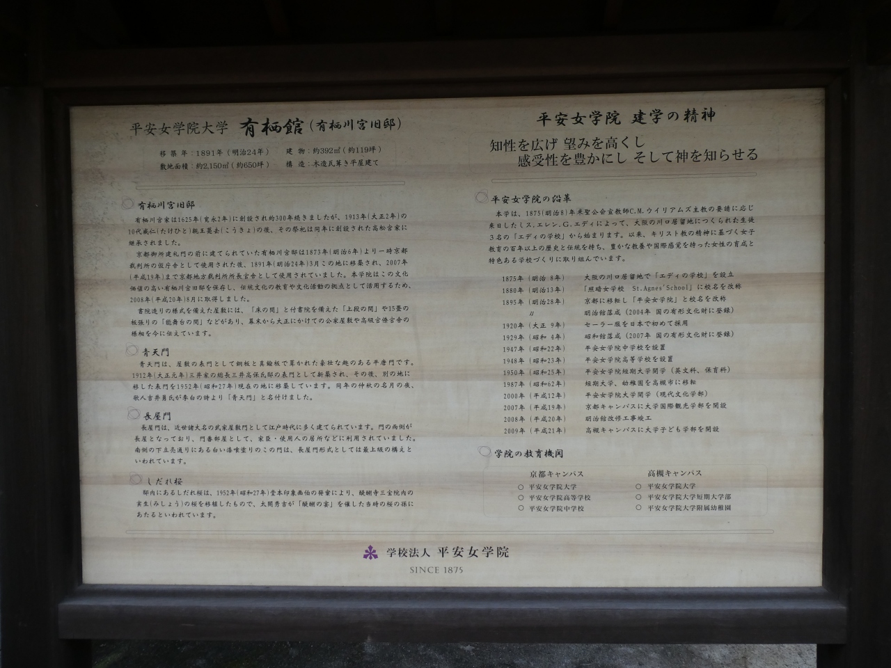 元々は京都御所建礼門前に有栖川宮邸敷地内に有ったのですが明治時代にこの場所に移設その後平安女学院の学舎の一部となって活用&保存されています。