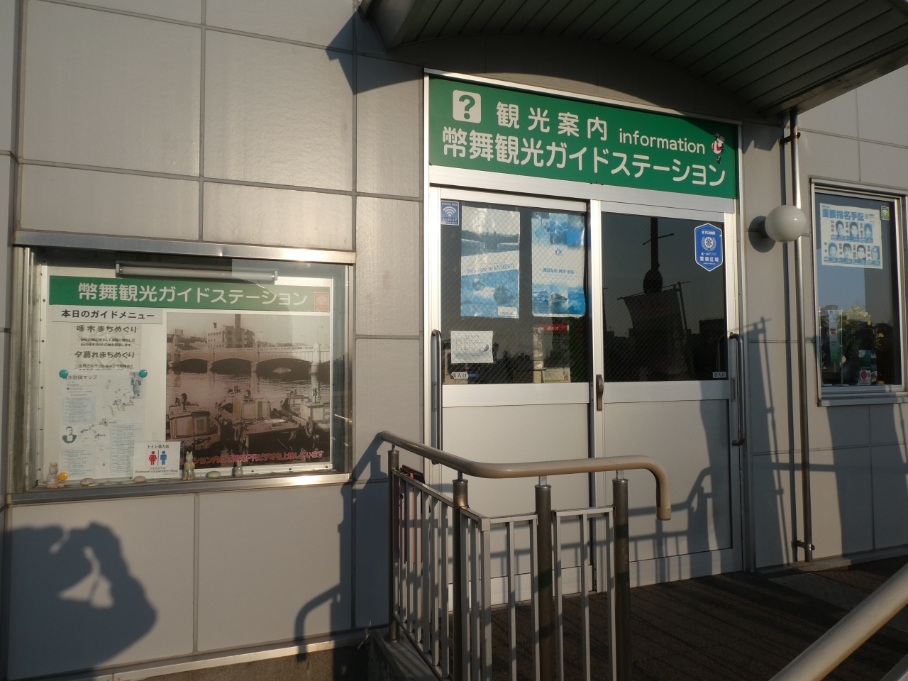 釧路の夕日の観光スポット幣舞橋のたもとに位置する正方形のブロックのような建物、元々交番だったこの建物を現在釧路観光ガイドステーションと言う観光案内所として再利用してます。