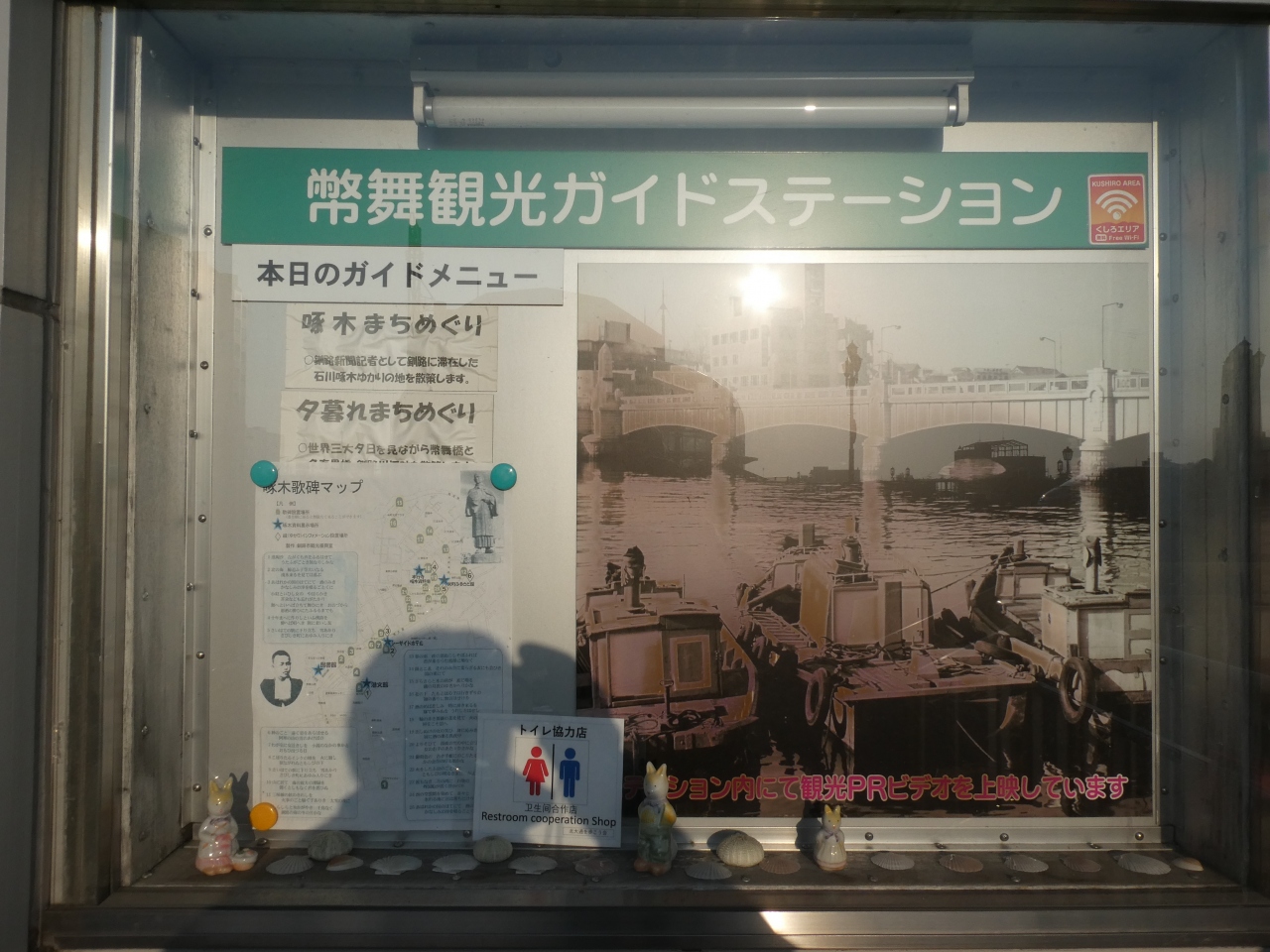 釧路観光ガイドの会の街歩きツアーを開催していて因みに訪問日のガイドメニューは「啄木まちめぐり」と「夕暮れまちめぐり」の2つでした。