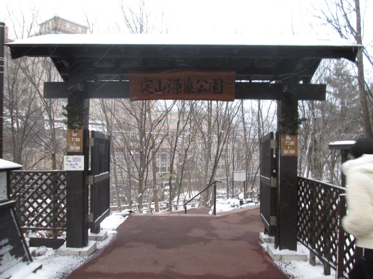 こじんまりした公園ですが、園内には定山渓温泉の基礎を作った美泉定山の坐像のほか、足湯や手湯もあり、入園は無料です。