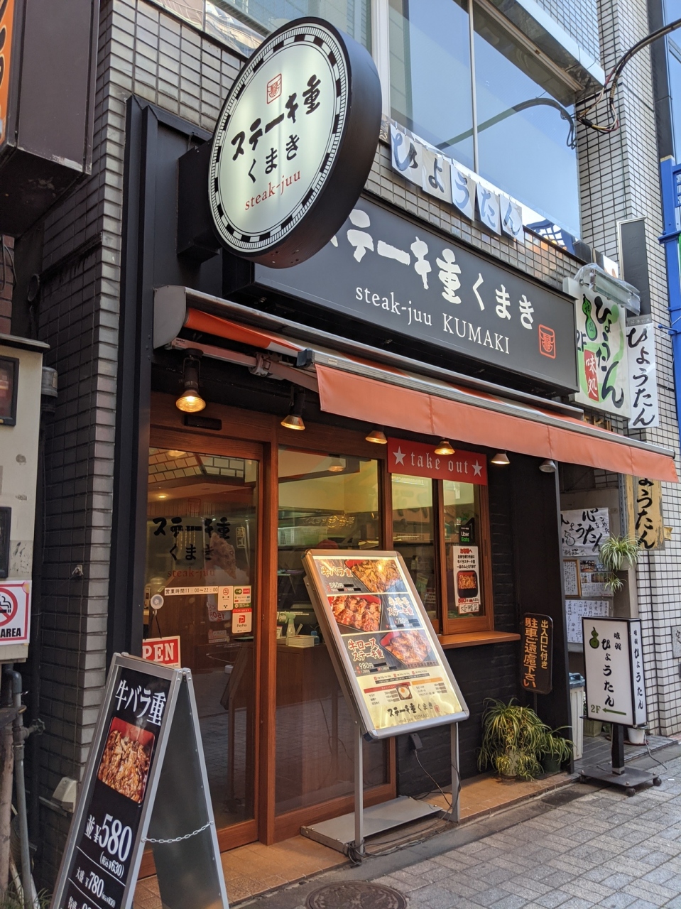 神田駅から直ぐの神田駅西口商店街にありました。ファストフードのように、気軽に利用することができるお店です。リーズナブルな値段で、ステーキがたっぷりと乗ったステーキ重を食べることができますが、ボリュームがあって美味しかったです。