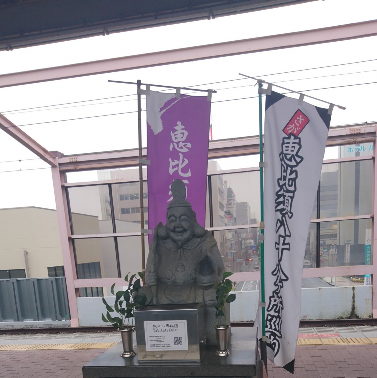 スタンプラリーには参加しておりませんが、町中にたくさんの恵比寿さんがおり、散策が楽しめました。駅のホームにいるのはなかなか珍しいと思います。お時間のあるかたは専用の台紙をもらい、説明書きの看板を読みながらされるのをおすすめします。
