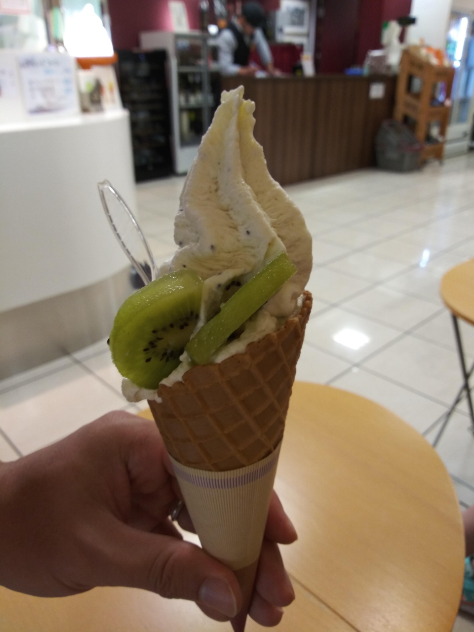 こちらのお店がテレビで紹介されていたので気になって訪れました。私は北海道ソフトクリーム(407円税抜)、相方はキウイソフト(458円税抜)を選びました。どちらも予想以上に濃厚で美味しいソフトクリームで驚きました。時々、北海道展でソフトクリームをいただきますが、今度からはここで食べようと思いました。